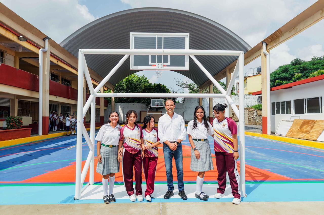 “Agradezco a maestros y alumnos de la Escuela Secundaria General 6 Belisario Domínguez, por el cálido recibimiento que me dieron para supervisar juntos la rehabilitación de la cancha de usos múltiples que quedó lista para su uso y disfrute. Esta obra que beneficiará a estudiantes, personal administrativo y padres de familia, reafirma nuestro compromiso con la educación de Boca del Río”, destacó Unánue Abascal.