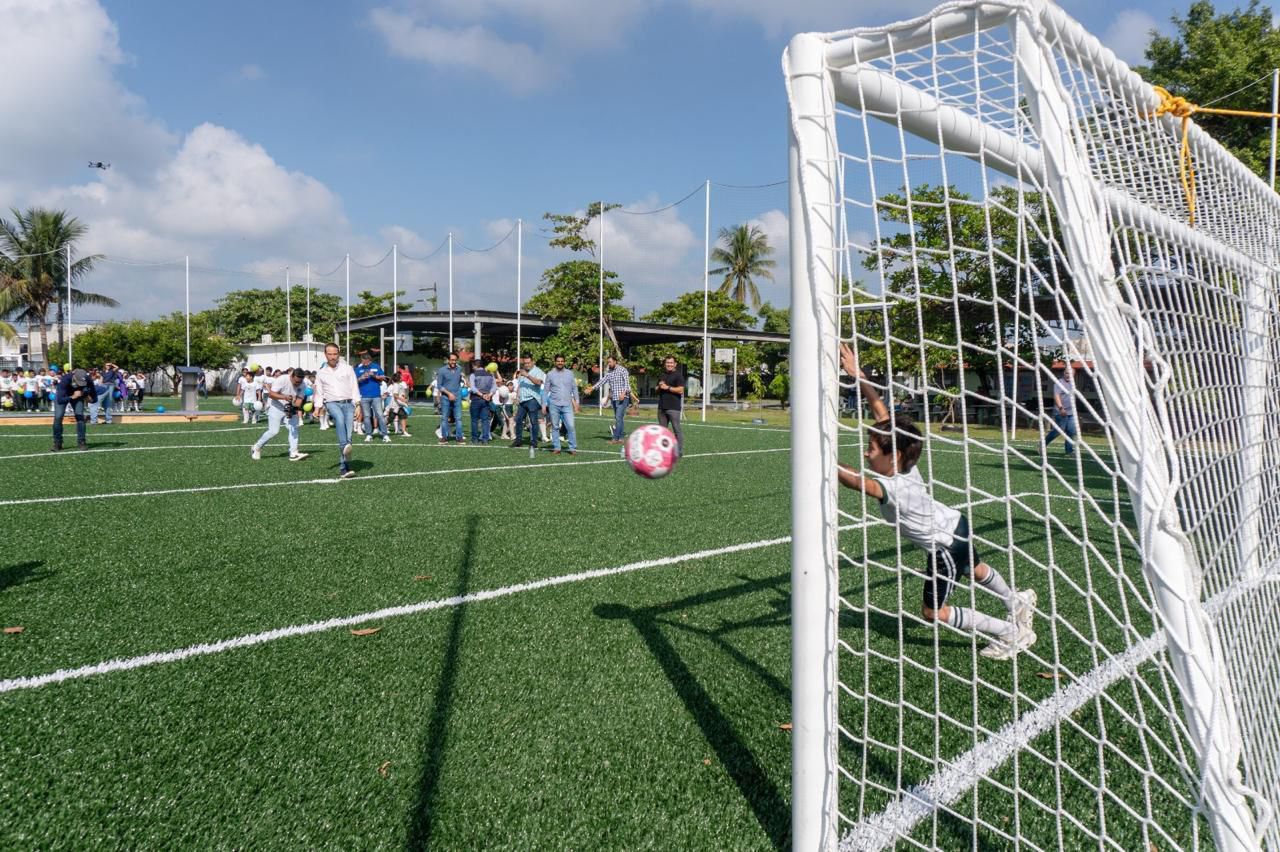 “No hay precedente de la magnitud de los trabajos realizados en beneficio de la mejora de la infraestructura escolar. Al fomento deportivo con la construcción de esta hermosa cancha de campo sintético, el cual vinculará a la comunidad educativa hacia una vida saludable, de sana convivencia y de fomento deportivo.